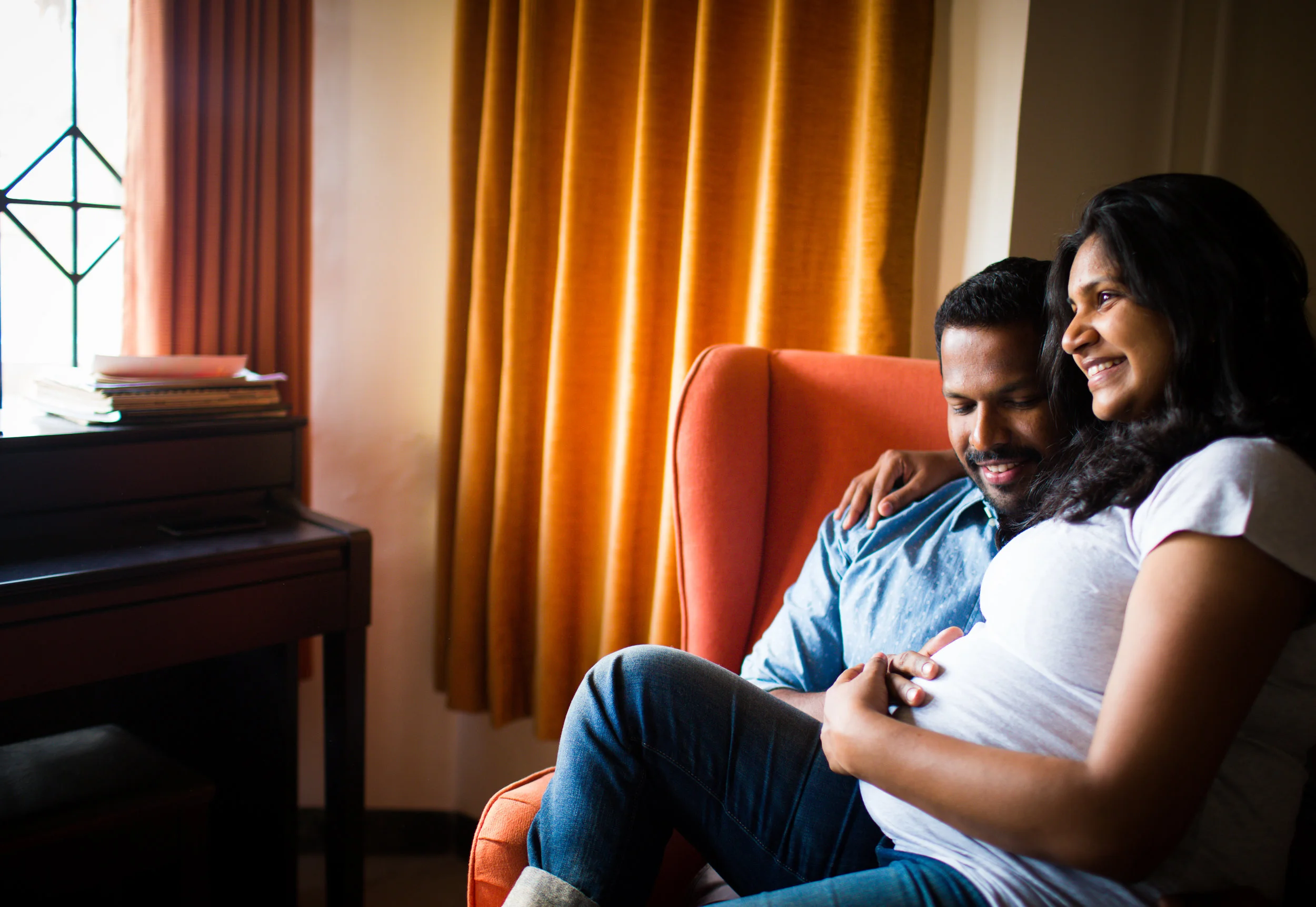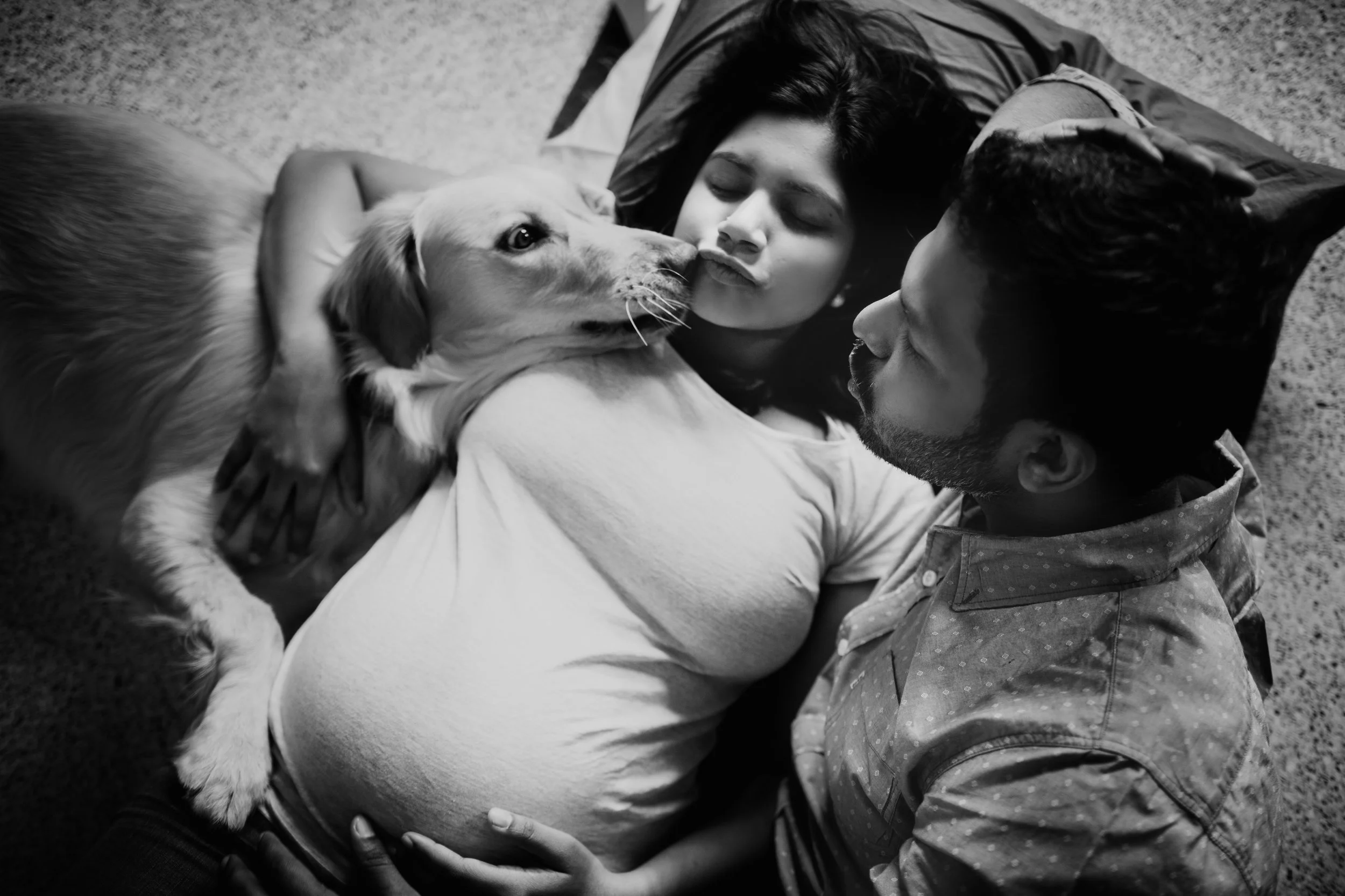 Keeping this real, simple and true to who they are, we did the shoot indoors in their cosy home, with their first child Waffle. Being artists, they were extremely comfortable posing albeit the posed images I convinced them to do.